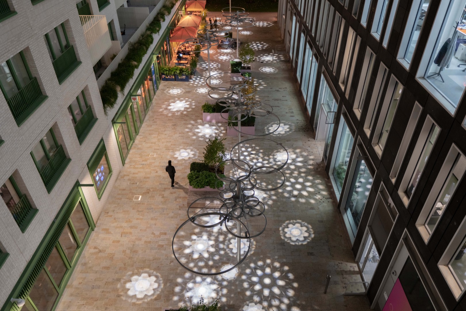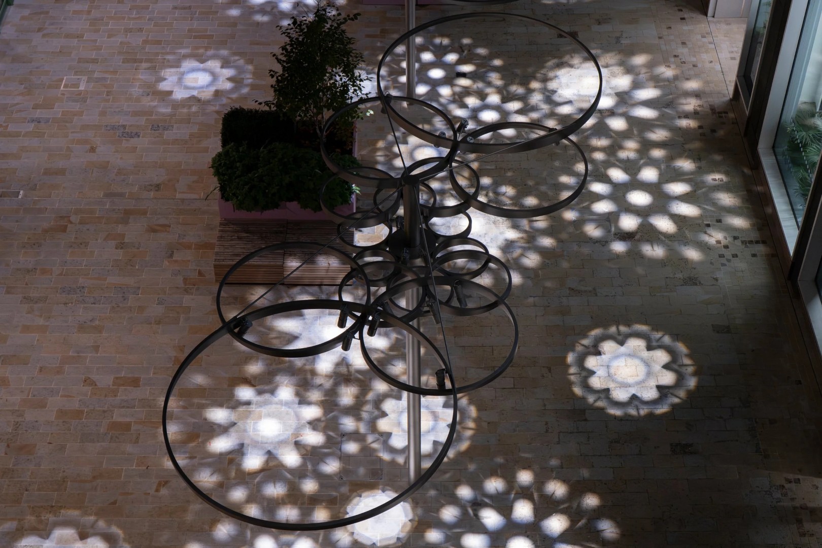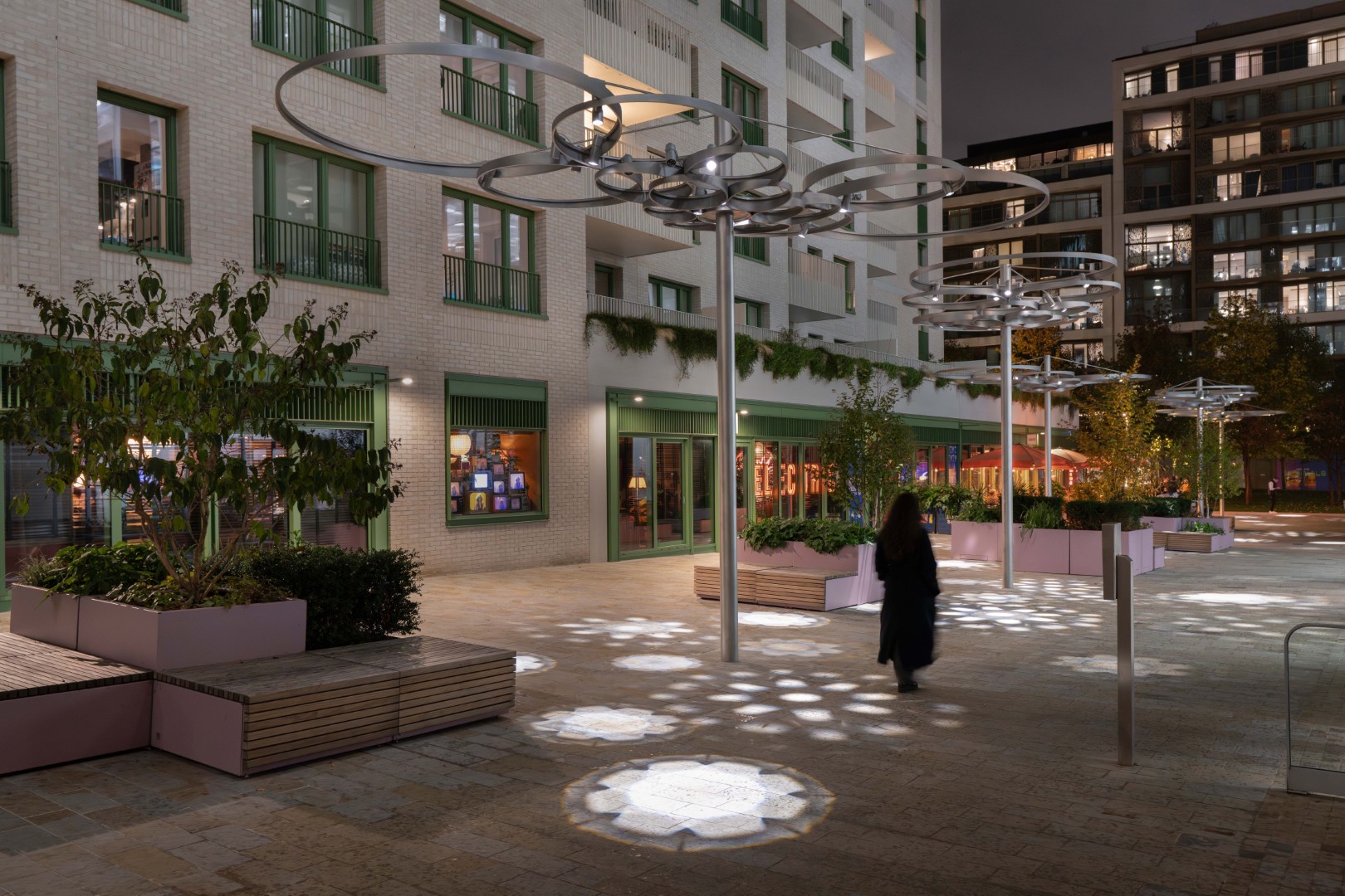 Shadow Inflorescence is an installation by Jason Bruges Studio in Keskidee Way within the Kings Cross redevelopment, London. It builds on the body of work by JBS that use technology to create impressions of natural phenomena.